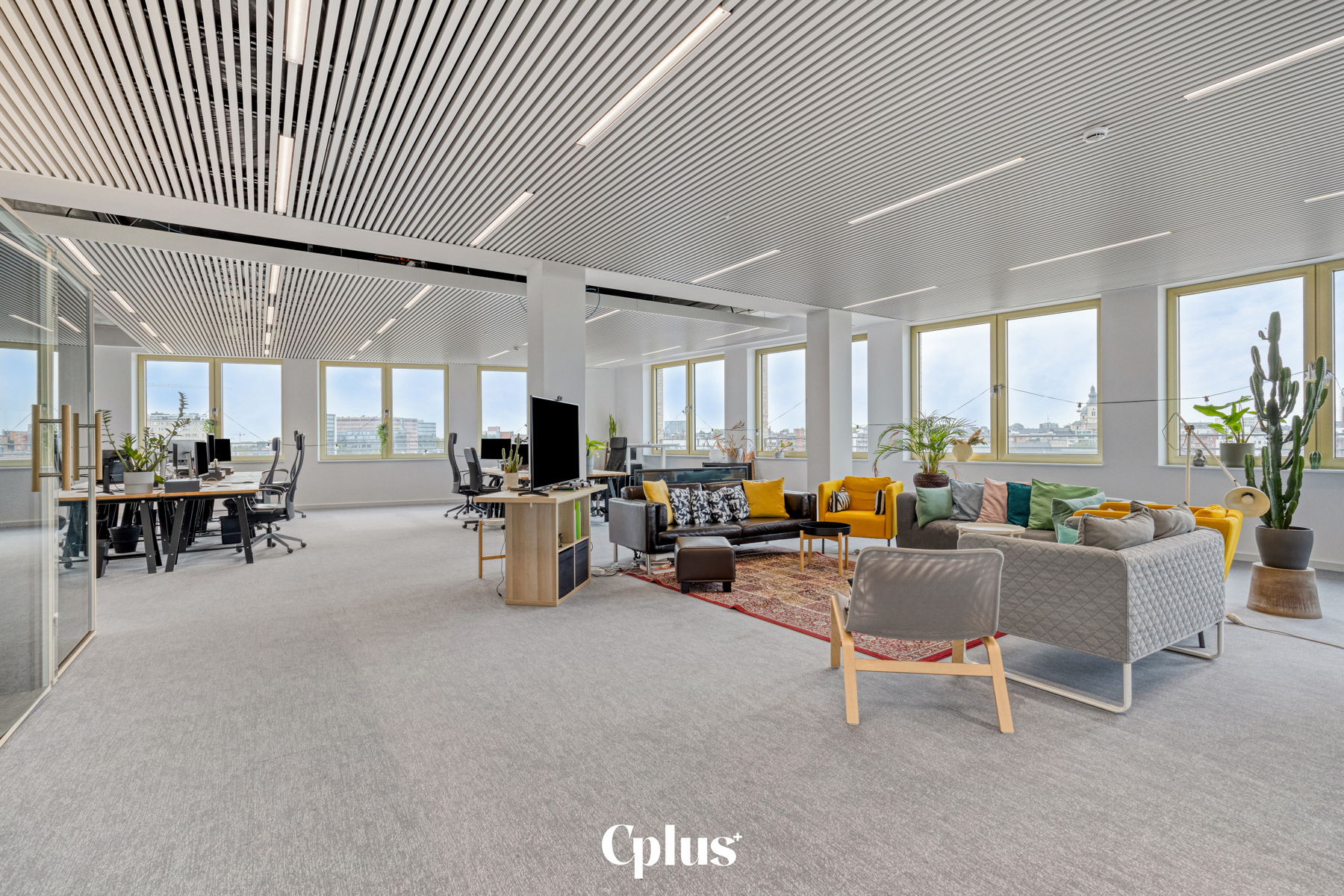 Het kantoor beantwoordt aan alle hedendaagse normen. Zo bestaat het plafond uit verscheidene klimaatplafonds, die verdeeld zijn in afzonderlijke eilanden. De klimaatplafonds zijn van het type SAPP (Smart Acoustic Passive Power). De metalen elementen zijn opgebouwd in een open gelamelleerde structuur, met een afdekmat in geluidsabsorberend materiaal. Zo leveren ze op een efficiënte en energiezuinige manier de gewenste temperatuur (koeling + verwarming) en fungeren ze tegelijkertijd als akoestische panelen. Tussen de lamellen werden tevens verlichtingsstroken in LED-strips ingewerkt.